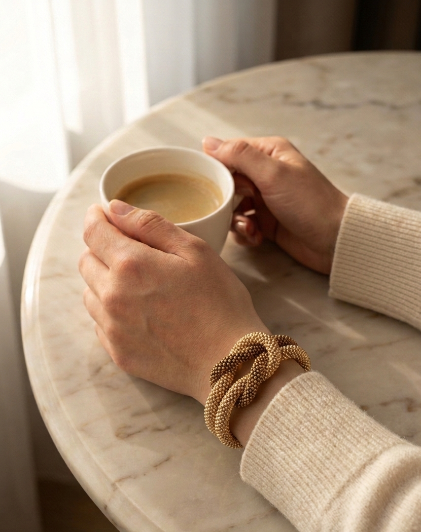 Je porte une attention particulière à chaque détail — le choix des perles, l'harmonie des couleurs, la légèreté du port — car je crois profondément qu'un bijou bien choisi peut transformer une tenue et illuminer une journée.